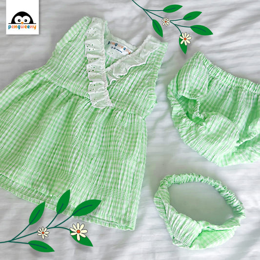 DAISY DRESS - طقم بناتي كامل مكون من فستان و بانتي و باندانا للشعر